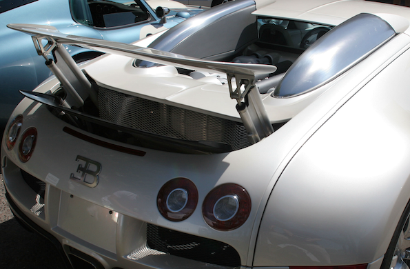 The Bugatti Veyron® tail wing rises to generate more downforce at high speeds. Image in the public domain, via Wikimedia Commons.